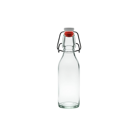 Compacte beugelfles van 100 ml, perfect voor het bewaren en presenteren van oliën, sappen, likeuren, kombucha of huisgemaakte creaties. Dankzij het massieve glas en de luchtdichte porseleinen beugelsluiting blijft de inhoud langer vers en veilig. Ideaal voor thuis, cadeau, horeca, of als sampleflesje.